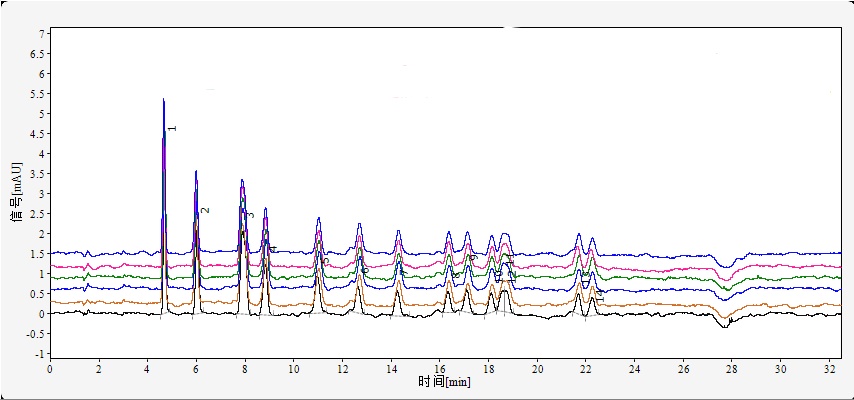流动相A:乙腈(1%水),流动相B:纯水,梯度洗脱