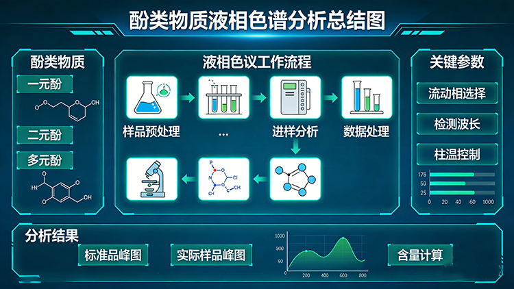 酚类化合物的液相色谱检测基于反相高效液相色谱(RP-HPLC) 分离原理,结合紫外 / 二极管阵列检测器实现定性定量,核心流程与原理如下:
