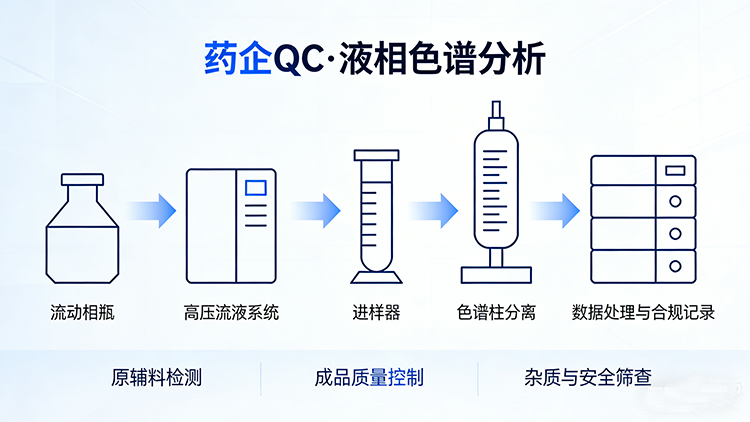 在药企 QC(质量控制)实验室,液相色谱仪是药品质量把控的 “核心利器”。从原辅料入厂检验、中间体过程监控到成品放行检测,液相色谱技术贯穿药品全生命周期的质量管控,是保障药品安全、合规的关键设备。本文将围绕药企 QC 对液相色谱仪的核心要求、设备与色谱柱选型、原理应用及常见问题,为实验室选型与运维提供实用参考。