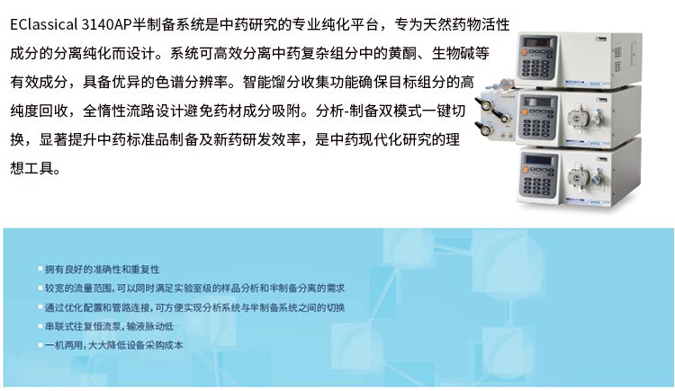制备液相色谱仪在在解决中药成分复杂、质量控制难、药效物质基础不明确等关键问题上具有重要应用。其高分辨率和高通量特性能够从复杂中药基质中精准分离目标成分,支持中药现代化、标准化及国际化发展。