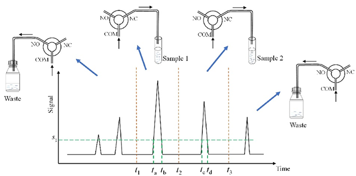 时间+阈值组合(更精准): 例如,设定在t1-t2时间段内收集“样品1”,但只有当此时间段内信号强度也同时达到阈值s时,才真正启动收集阀切换到收集状态(NC口连通),否则视为无效或废液(NO口连通)。这有效避免了收集到非目标或低浓度馏分,提高了目标物的纯度和回收率。