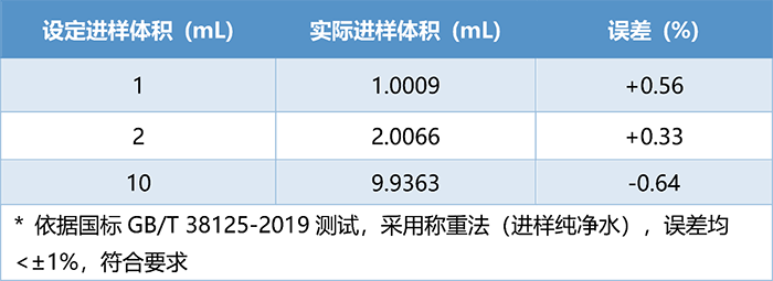1、进样精度:不同体积下,误差均控制在 ±1% 以内,重复性优异,为可靠分离奠定基础