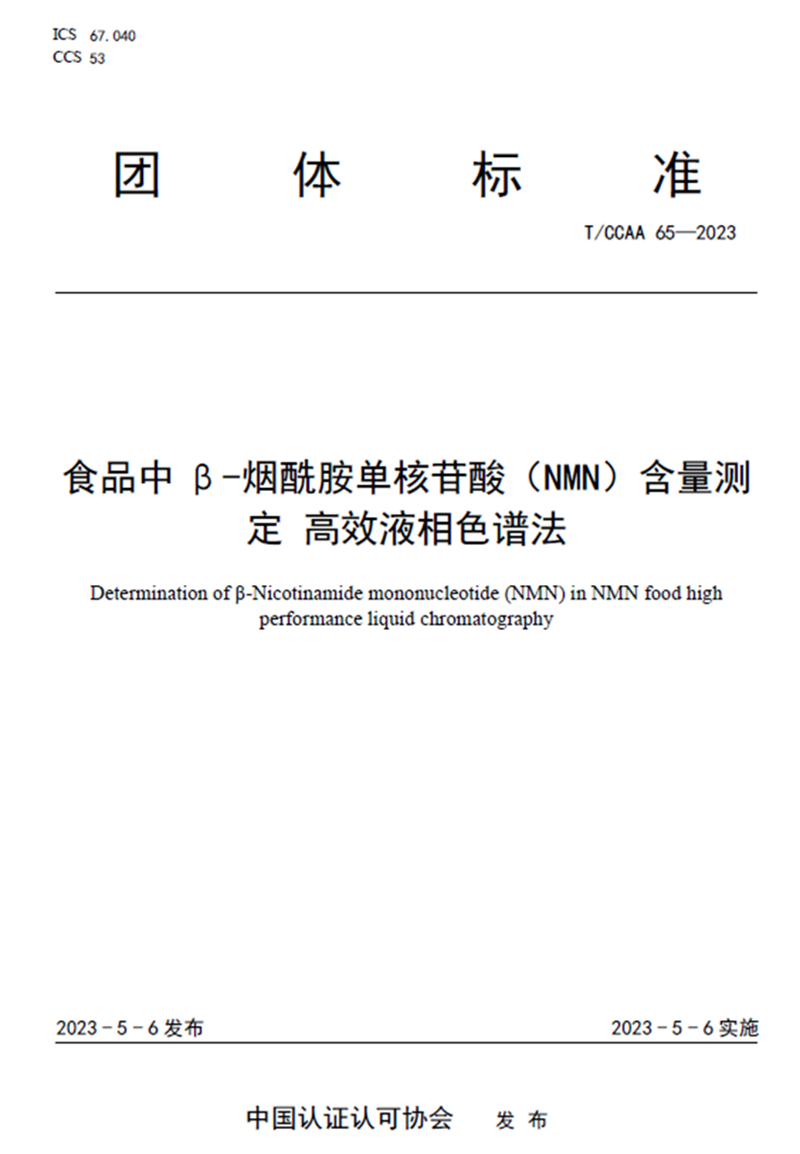 中国检验检测学会近期发布了《化妆品中β-烟酰胺单核苷酸(NMN)含量测定高效液相色谱法》团体标准,为化妆品中NMN含量的科学测定提供了统一依据。依利特科技参与了《食品中β-烟酰胺单核苷酸(NMN)含量测定高效液相色谱法》团体标准的制定及方法验证,该标准于2023年5月正式发布。