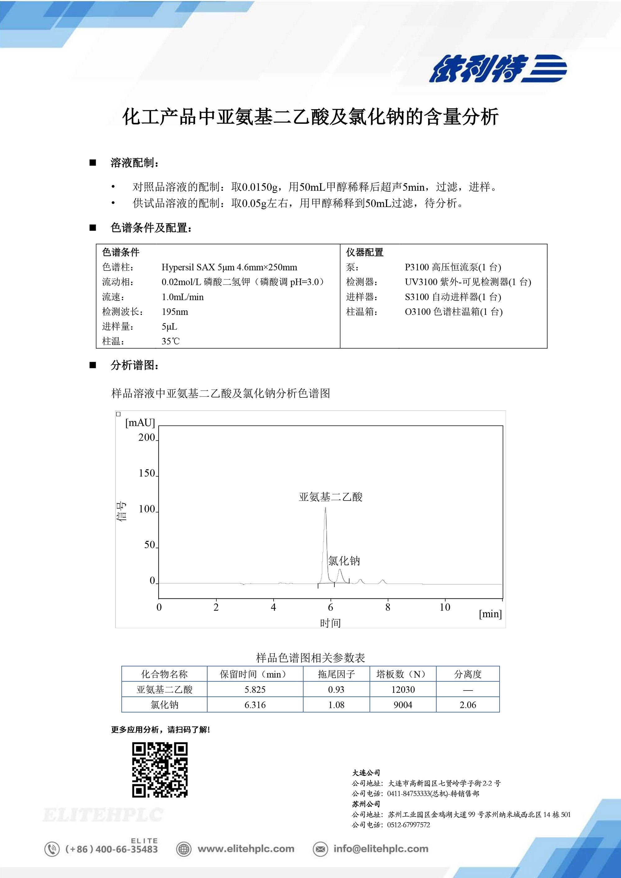 化工产品亚氨基二乙酸及氯化钠的含量分析