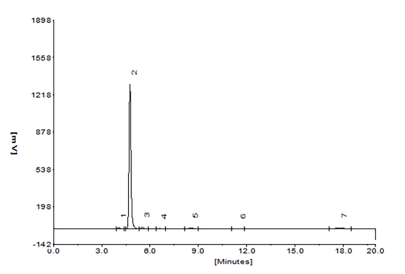 | 峰号 | 组分名 | 保留时间(min) | 峰面积(mV *sec) | 塔板数(N) | 拖尾因子 | 分离度 |