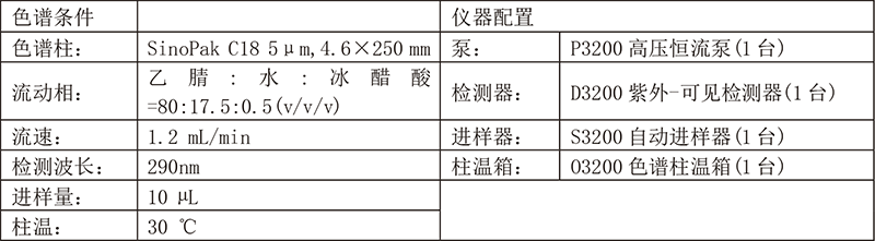 对查出使用禁用农药的蔬菜开具高额???,也是为了保障人民群众的食品安全。依利特使用EClassical 3200液相色谱仪匹配SinoPak C18色谱柱,对蔬菜中毒死蜱的进行分析检测,为人民群众的餐桌安全尽一份力。