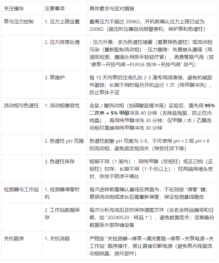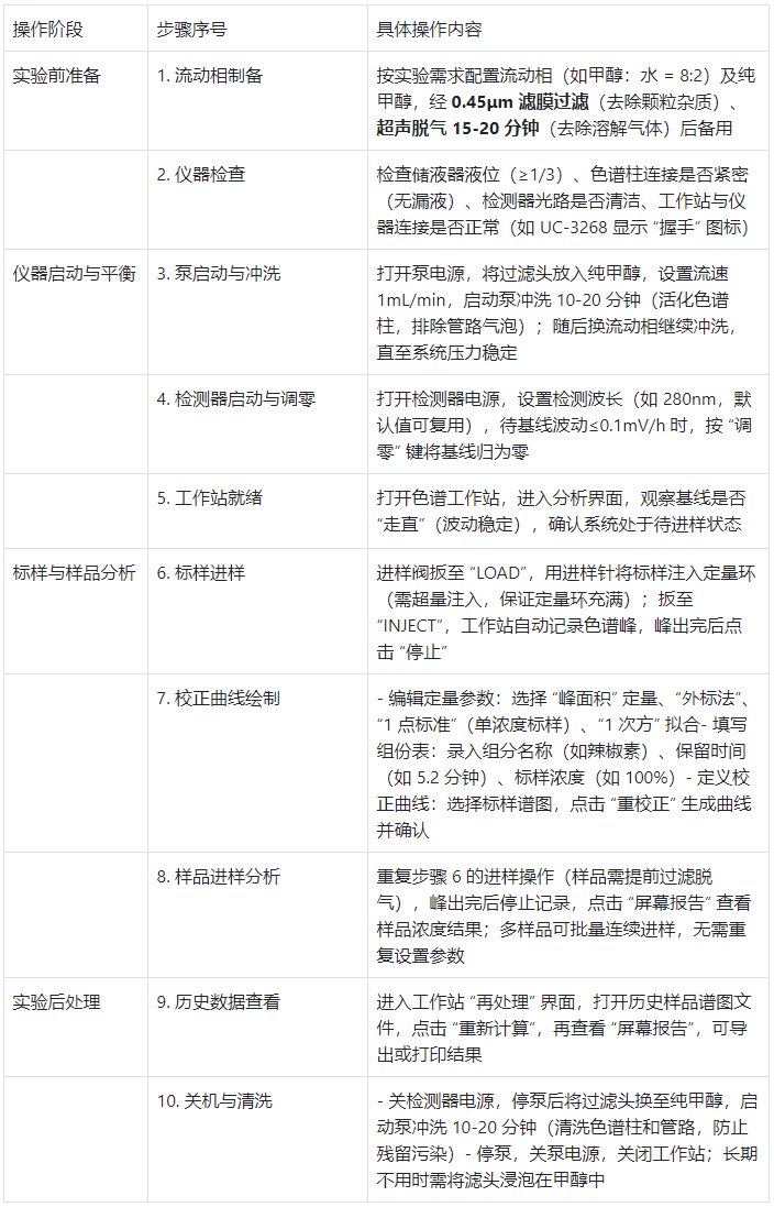 表格 3:HPLC 标准化操作步骤(分阶段)