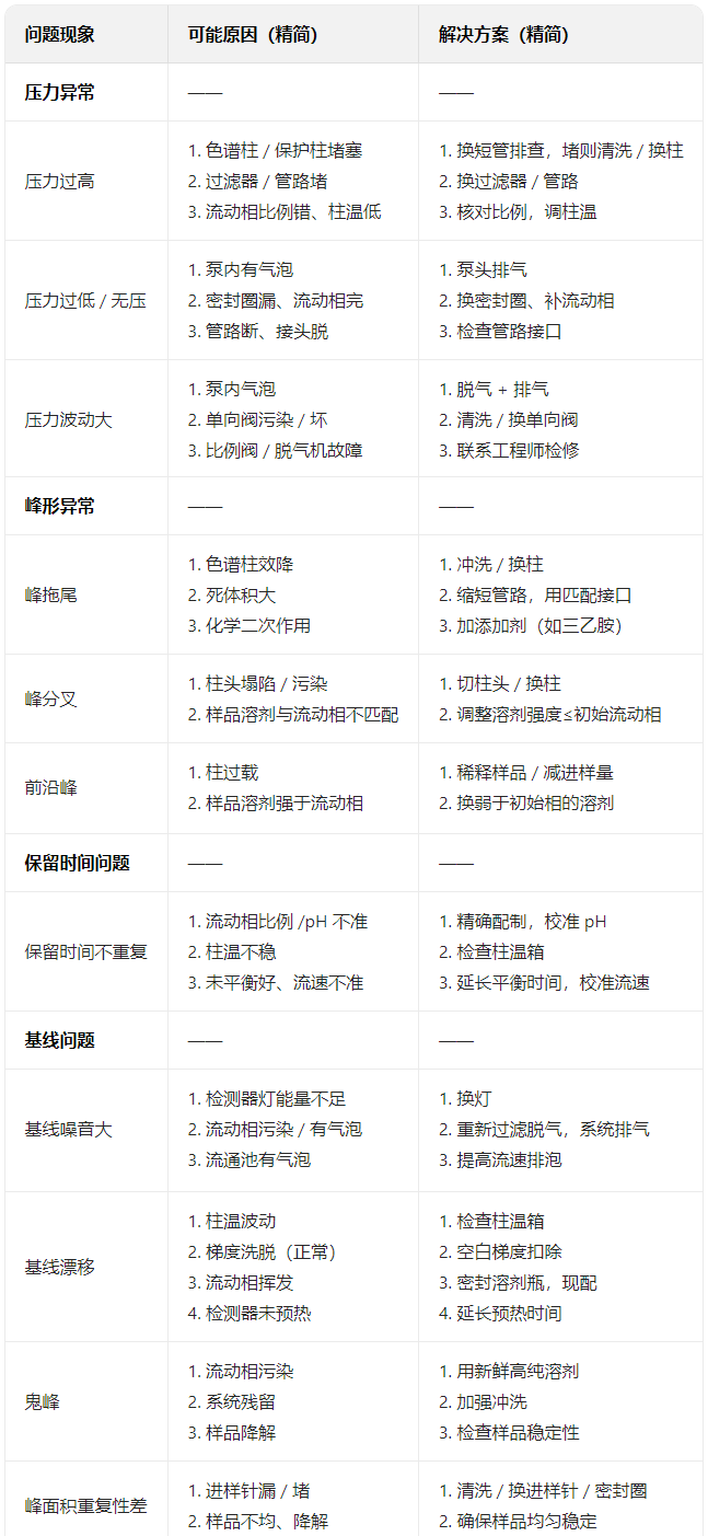 HPLC 使用常见问题(Troubleshooting)及解决方案