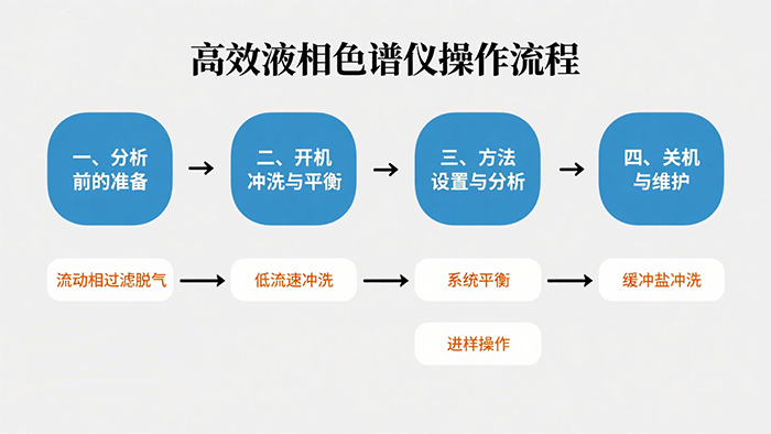 核心原则: 不同品牌和型号的 HPLC,操作细节会有点差异,但核心思路和操作逻辑是相通的。记住 “开机先冲洗,关机要冲净” 这条老规矩,准没错。