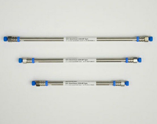 Amber色谱柱主要包括凝胶渗透色谱(GPC)和尺寸排阻色谱(SEC)两类,分别针对有机相和水相体系的高效分离设计。其中,GPC系列采用高交联度的聚苯乙烯-二乙烯基苯(PS/DVB)基质,具有良好的化学稳定性和分离效率,尤其适用于合成高分子及聚合物分子量的测定。而SEC系列则以亲水化薄膜修饰的硅胶为填料,具有良好的生物相容性,广泛用于蛋白质、多肽等生物大分子以及水溶性聚合物的分析与纯化。