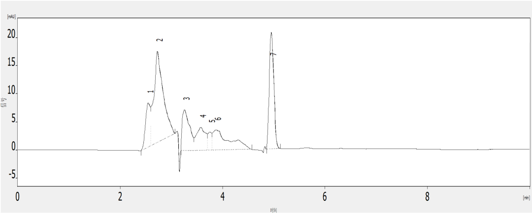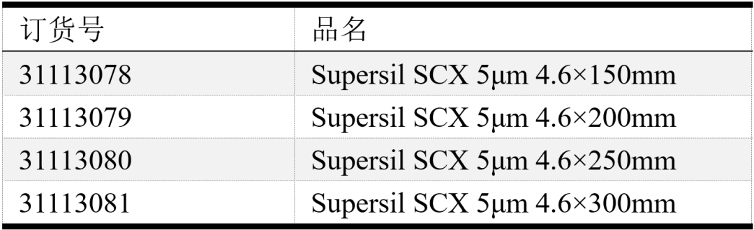 使用依利特新的EClassical 3200高效液相色谱仪,搭配Supersil SCX色谱柱,能很好的检测出目标物,能和样品中的有关物质达到良好的分离,且峰形良好,满足定性定量分析的要求。