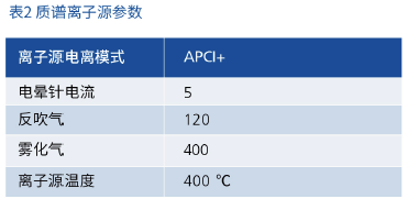 采用 EClassical 3200L-MS2 Vertical 9100 三重四极杆液质联用系统进行分析,离子源参数及目标化合物质谱参数见表 2 和表 3。
