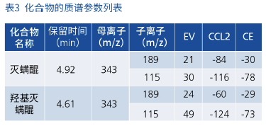 表 3 化合物的质谱参数列表