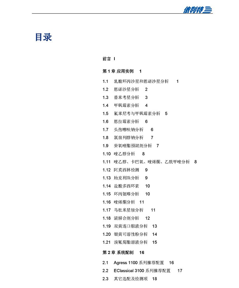 上述内容仅为《高效液相色谱 在兽药行业的应用》(1.pdf)核心摘要,完整文档包含1.3-1.21 共 19 类兽药的详细检测步骤(如替米考星、氟苯尼考、阿莫西林等)、全部谱图原图、系统选配检测器的适用样品清单及全国办事处联系方式,可直接用于实验室方法验证与日常检测。