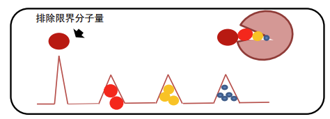 在样品分离过程中,大于尺寸排阻极限的化合物将会不受阻碍,直接通过柱子;而在工作范围内的小的化合物将会被填料截留,随着溶剂的洗脱逐渐渗透过填料的孔,随后流出柱子,从而达到样品分离的目的。