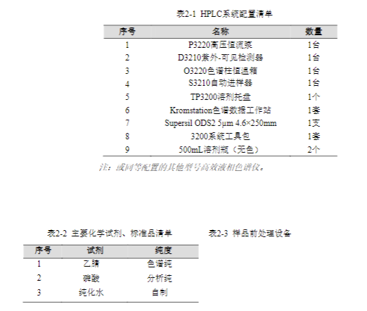 本实验参考《GB/T 5750.8-2023 生活饮用水标准检验方法 第 8 部分:有机物指标》,采用依利特公司生产的 EClassical 3200 高效液相色谱仪,对生活饮用水中的丙烯酸的液相色谱测定法进行方法验证。