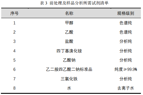 四丁基溴化铵 - 乙酸钠混合溶液:称取 6.45 g 四丁基溴化铵、2.46 g 乙酸钠,加入 20 mL 乙酸,用水定容至 1000 mL。