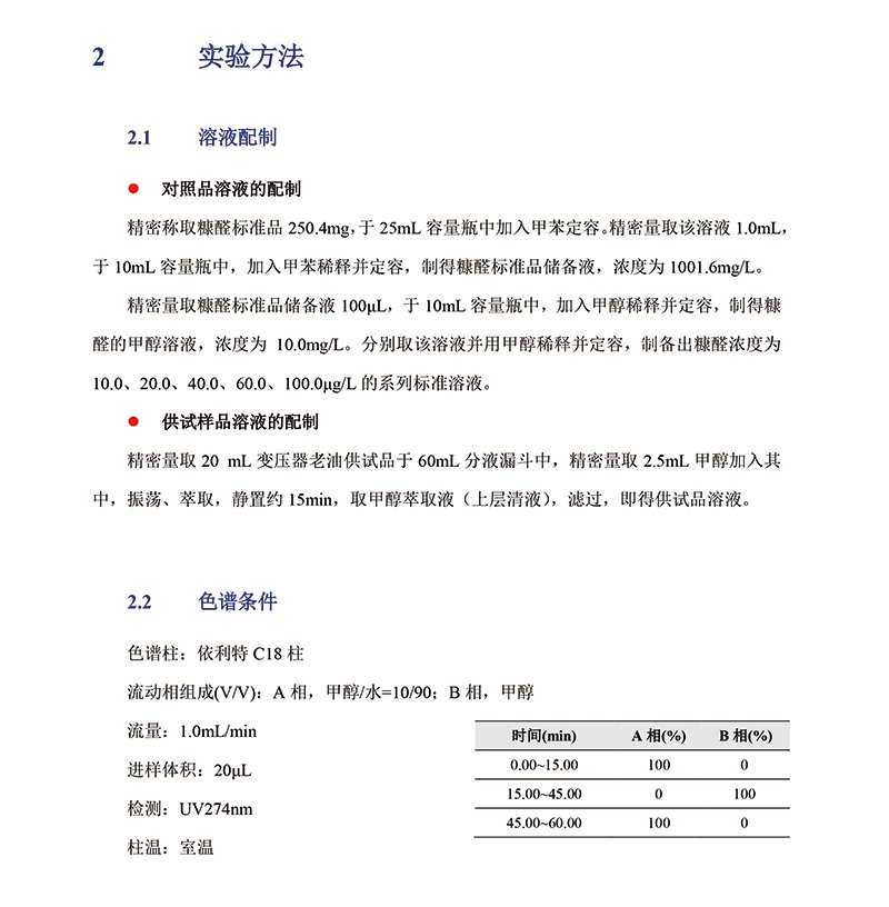 变压器油中糠醛检测 解决方案