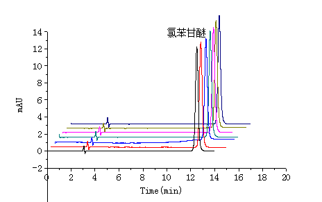 图5-2 氯苯甘醚标准品连续进样重复性谱图