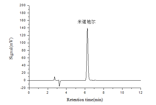 从以上结果可知,米诺地尔分析速度快,不对称度好,柱效高,故该方法适合于米诺地尔的分析。