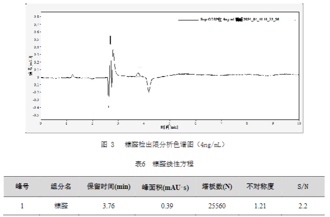 将糠醛标准工作溶液,按 2.2 中色谱条件进行分析,糠醛的线性如下表所示: