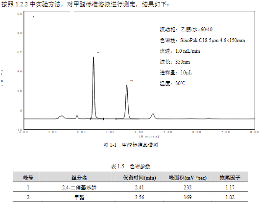 按照 1.2.2 中实验方法,对甲醛标准溶液进行测定,结果如下: