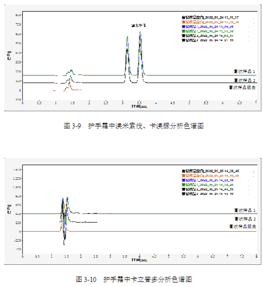 高清资料:图 3-1 至 3-10 高清色谱图(含峰型放大细节)、护手霜样品加标谱图;