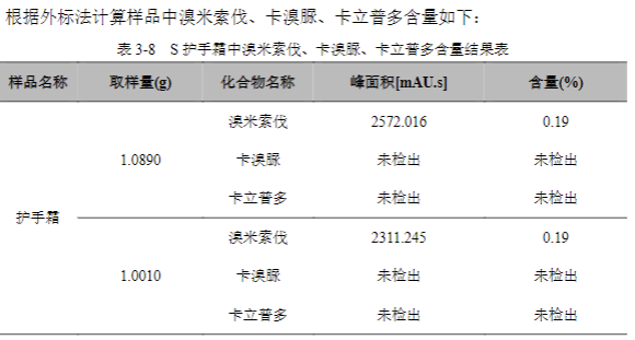 根据公式计算溴米索伐、卡溴脲仪器检出限、定量限和方法检出限、定量限,结果如下: