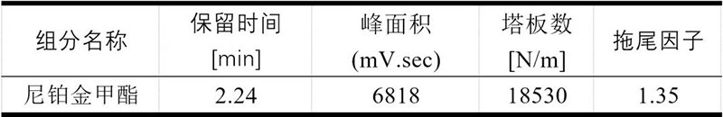 依利特新款的EClassical 3200液相色谱仪搭配新推的SinoPak BEH Phenyl色谱柱,对尼铂金甲酯样品进行分析,峰形对称性较好,柱效高,满足定性定量分析的需求。