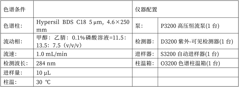 依利特新款的EClassical 3200液相色谱仪搭配经典的Hypersil BDS C18色谱柱,对小儿至宝丸样品进行分析,峰形较好,柱效较高,满足定性定量分析的需求。
