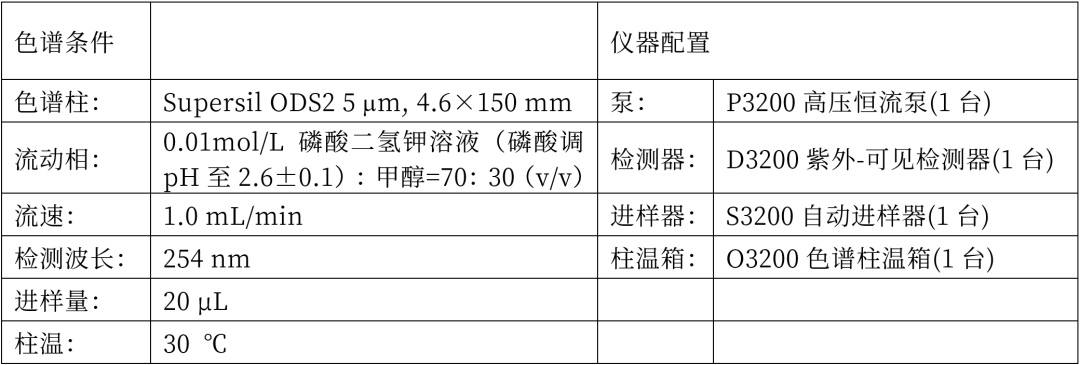 色谱条件及配置: