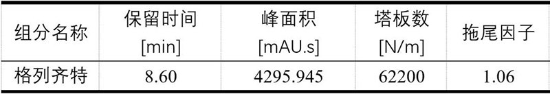 依利特新款的EClassical3200液相色谱仪搭配经典的Supersil ODS2色谱柱,对格列齐特药品进行分析,峰形对称性很好,柱效也很高,满足定性定量分析的需求。