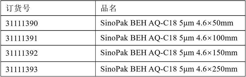 使用EClassical 3200高效液相色谱仪配新推出的SinoPak BEH AQ-C18色谱柱分析阿莫西林样品,柱效高,峰形好,分析速度快,完全可以满阿莫西林定性定量分析的需求。