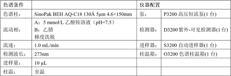 依利特新款的EClassical 3200液相色谱仪,搭配新款SinoPak BEH AQ-C18色谱柱,能很好的对咖啡因、可可碱、茶碱、黄嘌呤进行分析,且峰形良好,满足定性定量分析的要求。