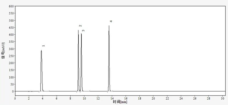 咖啡因、可可碱、茶碱、黄嘌呤样品色谱图