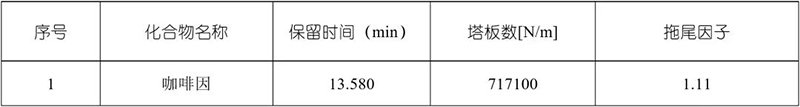 称取0.01g咖啡因置10mL容量瓶中,加入甲醇溶解定容至刻度,摇匀,即得1mg/mL标准溶液。