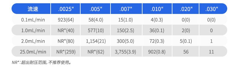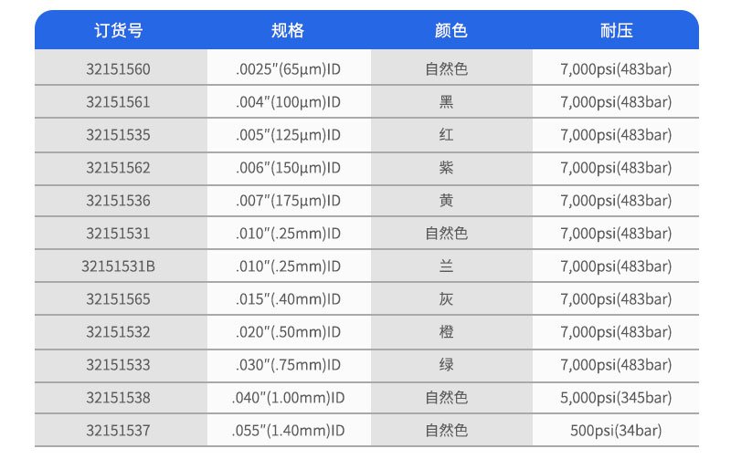 所有PEEK毛细管的内径和外径的公差均在±0.0005"以内。