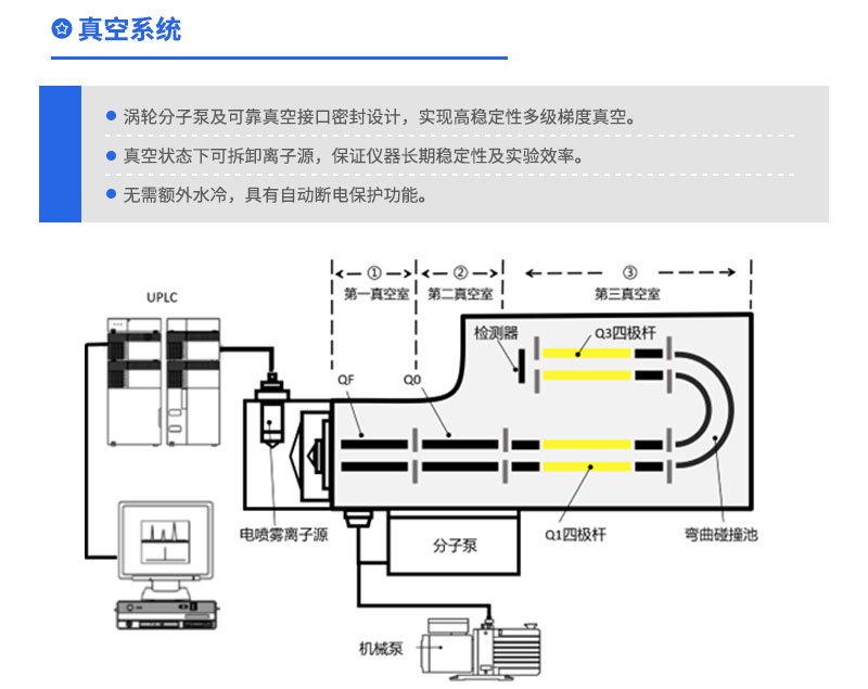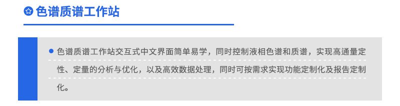 依利特MS2Vertical 9020 LC-MSMS,其质谱系统具有宽质量数范围(m/z 5-3000 amu),低记忆效应和交叉污染等特点;液相色谱系统耐压1300bar,具备双高压二元功能,极速进样模式,柱温箱温控精确等优势,保证分析的准确性、灵敏度和重现性。色谱质谱工作站交互式中文界面简单易学,同时控制液相色谱和质谱,实现高通量定性、定量的分析与优化,以及高效数据处理,同时可按需求实现功能定制化及报告定制化。广泛应用于生物制药、临床检测、食品安全、环境分析、法医、化学药与中药新药研发和与质量控制、新材料和化工产品开发等领域。