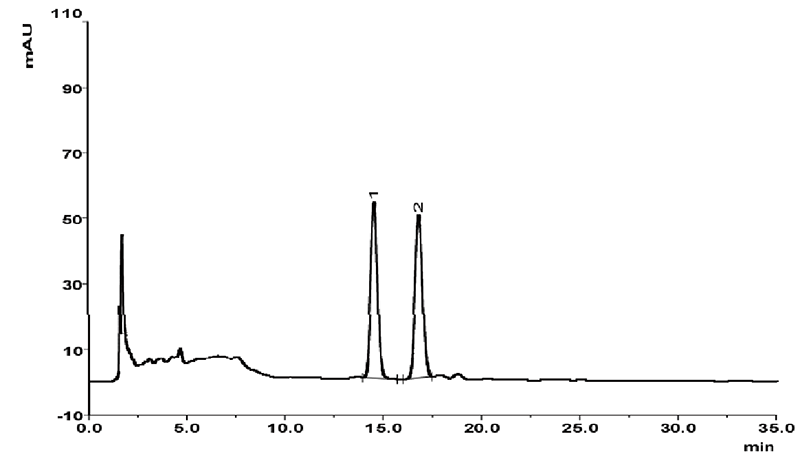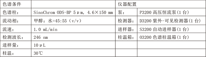 依利特新款的EClassical 3200液相色谱仪搭配经典的SinoChrom ODS-BP色谱柱,对白蚀丸中的补骨脂素和异补骨脂素成分进行分析,柱效高,分离度好,满足定性定量分析的需求。
