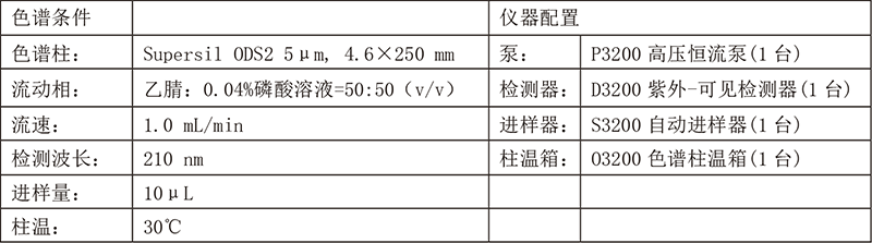 依利特新款的EClassical 3200液相色谱仪搭配经典的Supersil ODS2色谱柱,对四味土木香散中的异土木香内酯成分进行分析,柱效高,分离度好,满足定性定量分析的需求。