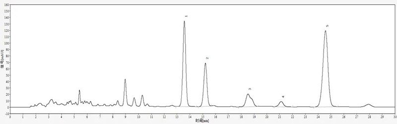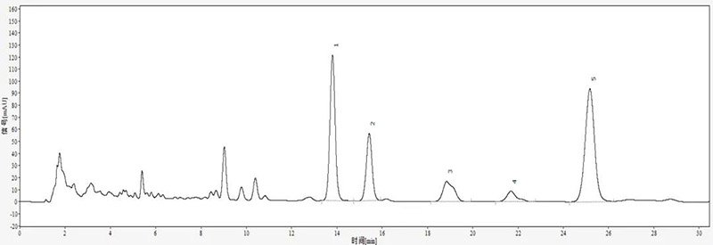 丹参酮,又名总丹参酮,是从中药丹参(唇形科植物丹参根)中提取的具有抑菌作用的脂溶性菲醌化合物。经临床试用证明治疗心绞痛效果显著,副作用小,为一治疗冠心病的新药。用液相方法分析该样品纯度,需要持续性地连续进样,所以客户非常关注所用色谱柱的柱寿命。依利特用Hypersil ODS2色谱柱连续分析丹参酮胶囊样品,考察色谱柱的耐受情况。
