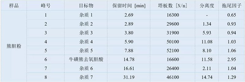 使用依利特经典SinoChrom ODS-BP色谱柱分析熊胆粉中的?;切苋パ醯ㄋ?,主成分与旁边的杂质分离度良好,可以满足药典定性和定量分析的需求。