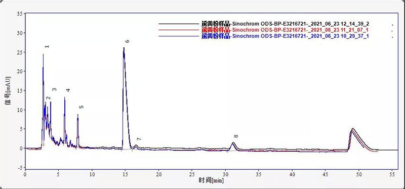 熊胆粉可以清热,平肝,明目。用于目赤肿痛,咽喉肿痛,其在治疗多种疾病方面具有显著的药理作用及临床疗效。由于熊胆粉成分比较复杂,且有一定的毒副作用。因此在对熊胆粉药理作用和临床应用深入研究的同时,也要对化学成分做进一步的研究。依利特使用EClassical 3200液相色谱仪匹配经典的SinoChrom ODS-BP色谱柱,对熊胆粉样品的成分进行分析检测。