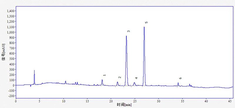 由此可见,使用依利特EClassical 3200高效液相色谱仪以及Supersil ODS-B色谱柱,测得的枳实配方颗粒的特征图谱满足药典要求。