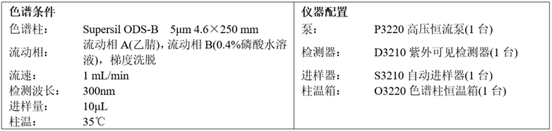 由此可见,使用依利特EClassical 3200高效液相色谱仪以及Supersil ODS-B色谱柱,测得的枇杷叶配方颗粒的特征图谱满足药典要求。