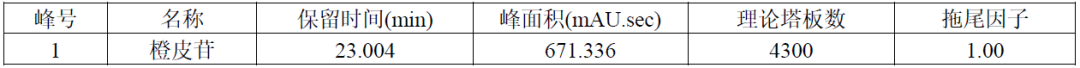 *药典流动相为甲醇-0.1%磷酸溶液(33:67),实验时将流动相比例调整为甲醇-0.1%磷酸溶液(38:62),可以缩短橙皮苷峰的保留时间。